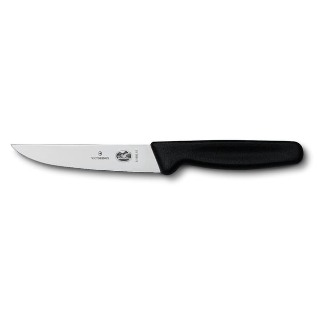 Разделочный нож Victorinox Standard Carving 5.1803.12 — это универсальный инструмент из серии швейцарских кухонных принадлежностей Standard. Благодаря гладкому лезвию и удобной нескользящей рукоятке, он станет надежным помощником на кухне. Нож отлично справляется с нарезкой и разделкой мяса, рыбы и овощей, а также легко шинкует зелень и грибы. Длина лезвия составляет 12 см, оно выполнено из высококачественной нержавеющей стали, которая долго сохраняет остроту и устойчивость к коррозии. На клинке нанесена лазерная гравировка с логотипом бренда и серийным номером модели. Рукоятка изготовлена из прочного пластика с текстурированной поверхностью, что обеспечивает надежный хват и предотвращает скольжение в руке. Материал устойчив к повреждениям, износу и не способствует размножению бактерий, сохраняя гигиеничность. Нож также представлен в вариантах с более длинным лезвием: модель 5.1803.15 с длиной 15 см и модель 5.1803.18 с длиной 18 см.