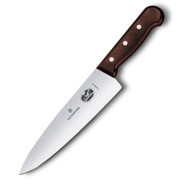 Victorinox WOOD Carving 5.2060.20G – разделочный нож с широким 22-сантиметровым лезвием, объединяет в себе стиль, мощь и практичность. Он идеально подходит для работы с крупными кусками мяса, нарезки овощей и быстрого измельчения продуктов. Лезвие с гладкой заточкой обладает отличной универсальностью и позволяет с легкостью справляться с различными кулинарными задачами. Благодаря легкой конструкции и продуманной эргономике, инструмент снижает нагрузку на руку, что делает работу комфортной даже при длительном использовании. Рукоять выполнена из натурального дерева, тщательно отшлифована и стилизована под розовое дерево, что придает ножу изысканный внешний вид. Компания Victorinox, заботясь об экологии, заменила палисандр в линейке Wood на более устойчивые породы – клен и сосну. Лезвие ножа изготовлено из высококачественной нержавеющей стали, устойчивой к коррозии и механическим повреждениям. На клинке присутствует фирменная лазерная гравировка Victorinox, включающая логотип бренда и уникальный серийный номер, подтверждающий оригинальность изделия. Этот нож станет отличным выбором как для профессиональных поваров, так и для любителей готовить. Однако для сохранения его эстетичного внешнего вида рекомендуется ручная мойка и тщательная сушка.