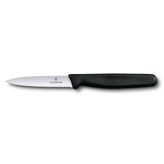 Victorinox STANDARD Paring 5.3033 – компактный нож для очистки и нарезки овощей, фруктов, грибов и зелени. Благодаря волнистому лезвию длиной 8 см, нож легко справляется даже с продуктами, имеющими гладкую или тонкую кожуру, такими как помидоры, персики и сладкий перец. Он также удобен для быстрого измельчения чеснока и удаления семян из фруктов. Острое лезвие выполнено из высококачественной нержавеющей стали, которая устойчива к коррозии и сохраняет заточку на долгое время. Серрейторная кромка гарантирует чистый разрез без раздавливания мягких продуктов. Эргономичная рукоять из прочного термопластика обеспечивает надежный хват, а шероховатая поверхность предотвращает скольжение, даже если руки мокрые. Удобная форма ручки делает работу с ножом максимально комфортной. Этот легкий и универсальный инструмент станет идеальным дополнением к кухонному инвентарю, помогая вам быстро и аккуратно подготавливать ингредиенты для любимых блюд.
