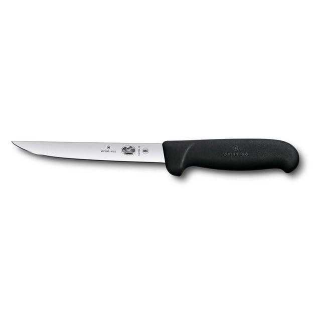 Victorinox FIBROX Boning 5.6103.15 – профессиональный обвалочный нож с 15-сантиметровым лезвием, специально разработан для точного отделения мяса от кости и дальнейшей разделки туши. Этот инструмент станет надежным помощником как на профессиональной кухне, так и в домашних условиях. Клинок изготовлен из мартенситной нержавеющей стали, которая обеспечивает высокую прочность, устойчивость к коррозии и механическим повреждениям. Полугибкое лезвие с гладкой режущей кромкой позволяет аккуратно работать даже с труднодоступными участками, облегчая процесс разделки и улучшая точность среза. Эргономичная рукоять из термоэластопласта Fibrox гарантирует надежный и комфортный хват. Благодаря нескользящей текстуре нож безопасен в использовании даже при работе с жирными продуктами. Он выдерживает стерилизацию и подходит для мытья в посудомоечной машине, что упрощает уход и продлевает срок службы.