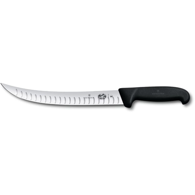 Victorinox FIBROX Butcher 5.7223.25 – кухонный нож для разделки мяса, предназначен для интенсивной работы как в мясоперерабатывающих цехах, так и на профессиональных кухнях. Благодаря удлиненному 25-сантиметровому клинку, инструмент обеспечивает чистые и точные разрезы без лишних усилий. Особенностью данного ножа является рифленое лезвие с узким профилем и заостренным кончиком, что уменьшает прилипание мяса к поверхности, облегчая разделку. Выполненный из мартенситной нержавеющей стали, клинок отличается высокой прочностью, коррозионной стойкостью и долговечностью. Универсальная Plain-заточка гарантирует остроту и эффективность при работе с любыми видами мясных волокон. Лазерная гравировка подтверждает подлинность изделия и его соответствие высоким стандартам качества. Рукоять изготовлена из термопластичного эластомера (TPE), делает ее износостойкой и надежной в эксплуатации. Материал не только устойчив к механическим повреждениям, но и обеспечивает антискользящий эффект, что особенно важно при работе с влажными или жирными продуктами. Эргономичная форма снижает нагрузку на кисть и предотвращает усталость при длительном использовании. Допустимый диапазон температур до 110°C позволяет стерилизовать нож и мыть его в посудомоечной машине.