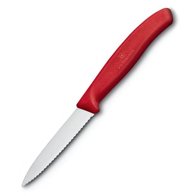 Victorinox SWISS CLASSIC Paring 6.7631 – надежный кухонный нож швейцарского качества, создан для очистки (нарезки) овощей и фруктов. Серрейторное лезвие сохраняет свою остроту длительное время, исключая необходимость частой заточки. Благодаря острой кромке нож легко справляется даже с гладкой кожурой и идеально подходит для аккуратного разделывания небольших кусочков мяса или рыбы. Лезвие длиной 8 см дополнено острым кончиком, который отлично подходит для удаления семян из таких овощей, как перцы. Максимальная острота достигается благодаря лазерной проверке угла заточки, что делает нож долговечным и удобным в эксплуатации. Эргономичная рукоять с текстурированной поверхностью обеспечивает удобный и надежный хват, а яркий дизайн красного цвета с фирменным логотипом Victorinox станет стильным дополнением к вашей кухонной утвари.