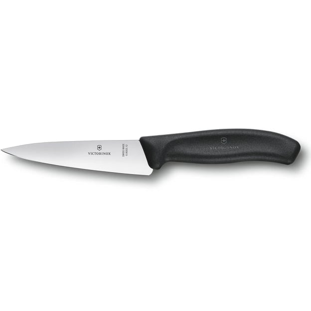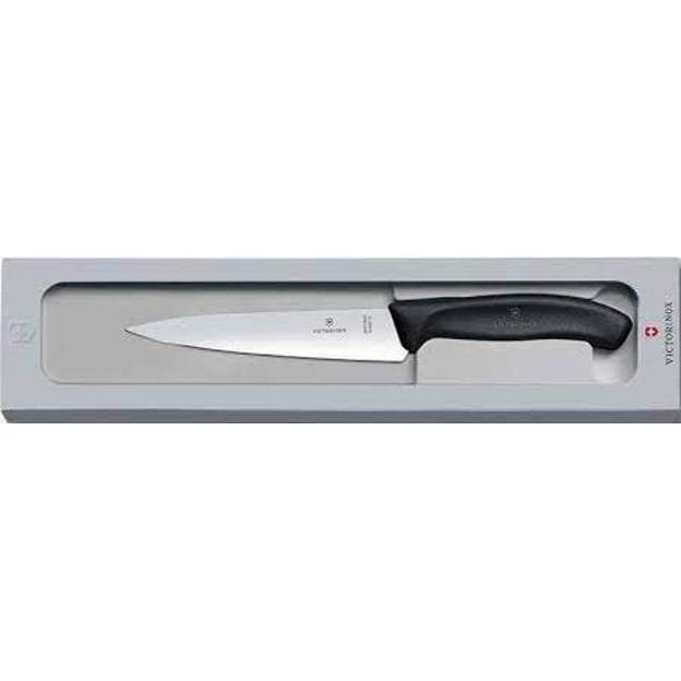 Кухонный нож Victorinox SWISS CLASSIC Carving 6.8003.12G с лезвием 12 см – компактный и универсальный инструмент от швейцарского производителя. Он оснащен острым гладким лезвием из нержавеющей стали, которое идеально подходит для нарезки и точной разделки небольших кусков мяса, рыбы, овощей и других продуктов. Благодаря высокой прочности и устойчивости к коррозии, нож легко справляется как с сырыми, так и с приготовленными, а также слегка подмороженными ингредиентами. Эргономичная рукоять из термостойкого полимера удобно лежит в руке, не скользит и обеспечивает надежный контроль во время работы. Ее поверхность устойчива к влаге, жиру и запахам, предотвращая размножение бактерий, грибка и плесени.