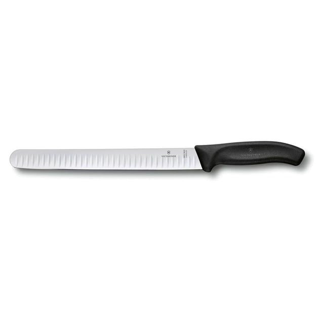 Victorinox SwissClassic 6.8223.25B — кухонный нож для аккуратной и быстрой нарезки продуктов разной плотности. Особенностью данной модели является удлиненное лезвие длиной 25 см с закругленным кончиком и специальными воздушными карманами вдоль режущей кромки. Эти выемки предотвращают прилипание нарезанных кусочков к лезвию, что особенно полезно при работе с мягкими и нежными продуктами. Лезвие изготовлено из первоклассной нержавеющей стали, которое обладает высокой устойчивостью к коррозии и воздействию влаги. Гибкость металла не только улучшает контроль во время работы, но и предотвращает деформации, такие как изгибы или искривления. Эргономичная рукоять из термоэластопласта, обладает противоскользящими свойствами и матовой текстурой, что гарантирует надежный хват даже во влажных руках. Этот нож станет незаменимым помощником как на профессиональной кухне, так и дома.