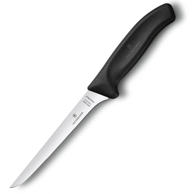 Victorinox SWISS CLASSIC Boning Flexible 6.8413.15G — это профессиональный обвалочный нож для точной разделки мяса, рыбы и птицы. Гибкое 15-сантиметровое лезвие изготовлено из высококачественной нержавеющей стали, которое филигранно отделит мясо от кости, удалит жилы и снимет пленку. Эргономичная рукоять из термоэластопласта (ТПЭ) обладает противоскользящими свойствами, что гарантирует надежный хват и удобство в использовании. Материал устойчив к влаге, жиру и перепадам температур, а сам нож можно мыть в посудомоечной машине. Этот нож станет незаменимым помощником как для профессиональных поваров, так и для любителей, которые ценят комфорт и качество при приготовлении блюд.