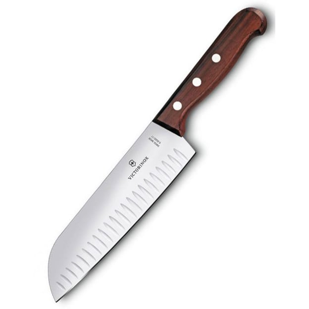 Кухонный нож Victorinox WOOD Santoku 6.8520.17G — это удачное сочетание японских традиций и швейцарской точности. Лезвие длиной 17 см из высококачественной нержавеющей стали, легко справляется с нарезкой мяса, рыбы и овощей. Благодаря рифленым выемкам на лезвии продукты меньше прилипают, что делает нарезку более аккуратной и быстрой. Сбалансированная конструкция и симметричная заточка позволяют одинаково удобно пользоваться ножом как правшам, так и левшам. Лезвие устойчиво к коррозии и долго сохраняет остроту благодаря прочной стали и высококачественной обработке. На лезвии выгравирован фирменный логотип Victorinox и уникальный серийный номер, подтверждающий подлинность изделия. Этот нож станет незаменимым помощником на кухне, обеспечивая точность, удобство и стиль в каждом движении. Рукоять из обработанного клена, стилизованного под палисандр, удобно ложится в руку и придает ножу элегантный, натуральный вид. Полированная поверхность рукояти обеспечивает комфортный хват и делает процесс готовки еще приятнее.