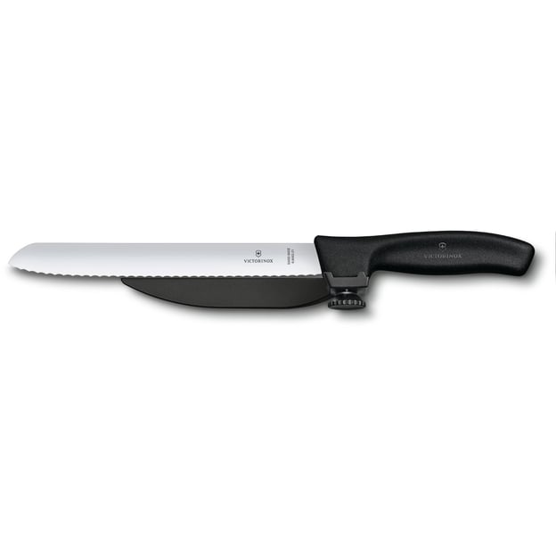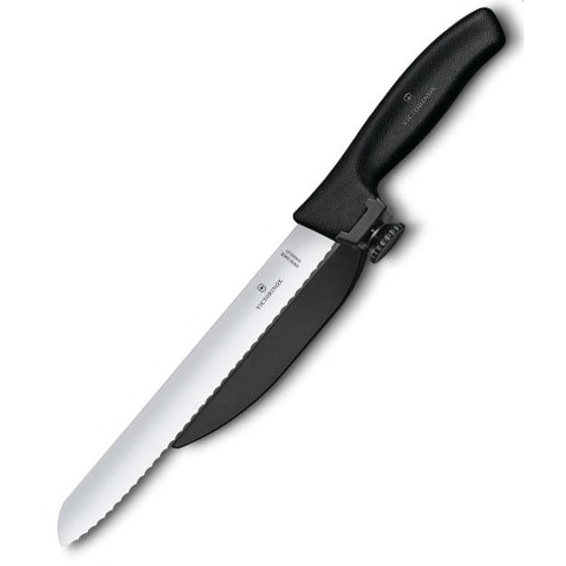 Victorinox SWISS CLASSIC DUX 6.8663.21 — инновационный нож с регулируемой направляющей. Это усовершенствованный кухонный нож от швейцарского производителя Викторинокс, выпущенный в 2019 году. Он разработан для идеальной нарезки ровными ломтиками одинаковой толщины. Благодаря удобной конструкции и эргономичной ручке с регулируемой направляющей, нож подходит для работы с разными видами продуктов — от ветчины и овощей до свежеиспеченного хлеба. Регулируемая направляющая позволяет устанавливать толщину нарезки от 1 до 15 мм с помощью специального колесика на ручке. Острое серрейторное лезвие длиной 21 см из высококачественной нержавеющей стали, обеспечивает точный и чистый срез. Эргономичная рукоятка из прочного и легкого полимера с шероховатым покрытием, предотвращает выскальзывание ножа из рук, устойчива к механическим нагрузкам, высокой температуре и влаге.