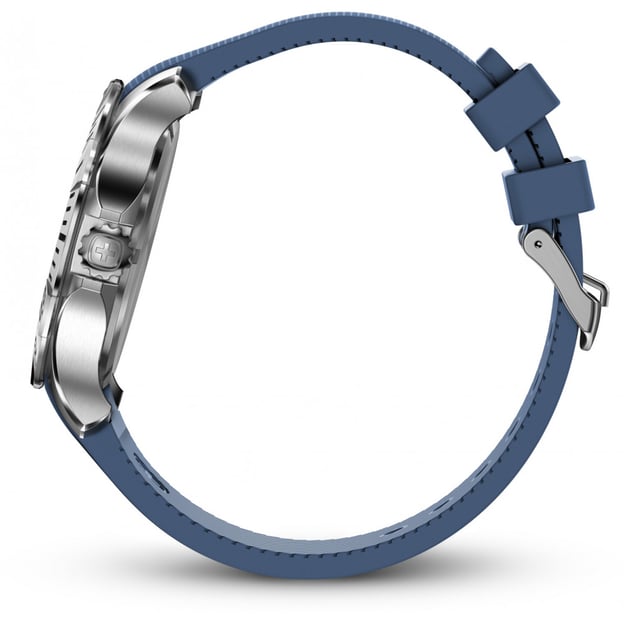 Функциональная модель с апертурой даты в положении "3 часа" и подвижным безелем, который можно использовать для измерения времени погружения. Выразительный синий циферблат с четкими маркерами значительно упрощает считывание времени. Большие светонакопительные стрелки и часовые метки с покрытием SuperLuminova, которые светятся в темноте. Конструкция с заворачиванием заводной головки дополнительно препятствует проникновению влаги внутрь корпуса во время погружений. Мягкий силиконовый ремешок с фактурной поверхностью препятствует прилипанию ремешка к руке. Высокий класс водонепроницаемости до 20 АТМ позволяет заниматься дайвингом, плаванием и другими водными видами спорта.