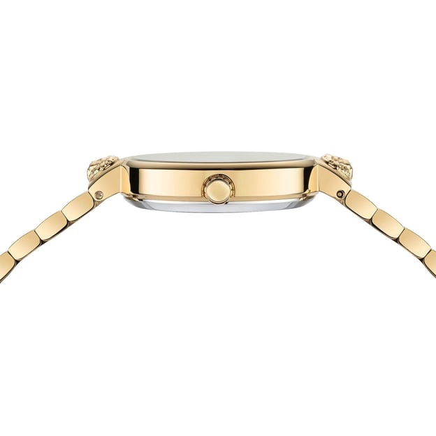 С четкими и объемными линиями идентичность аксессуара подтверждается двумя рельефными символами Versus Versace Lion на тонком браслете оттенка розового золота.